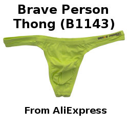 This is the last of three thongs I bought off AliExpress from the store Brave Person Official Store. This one is branded Brave Person on the left side. This is a tight fitting thong,...