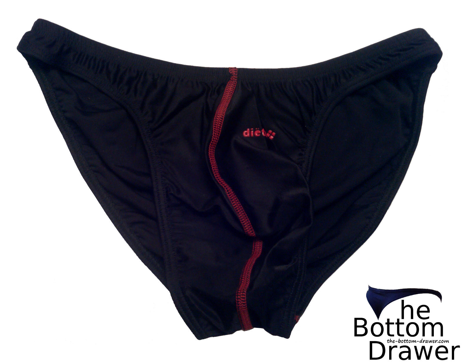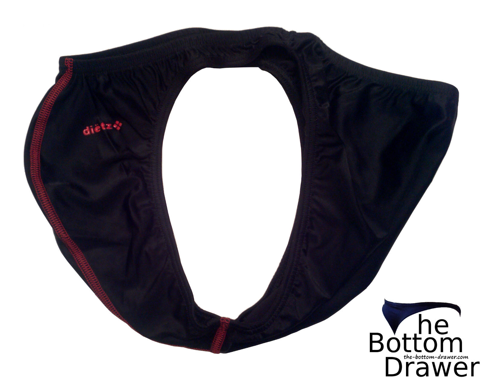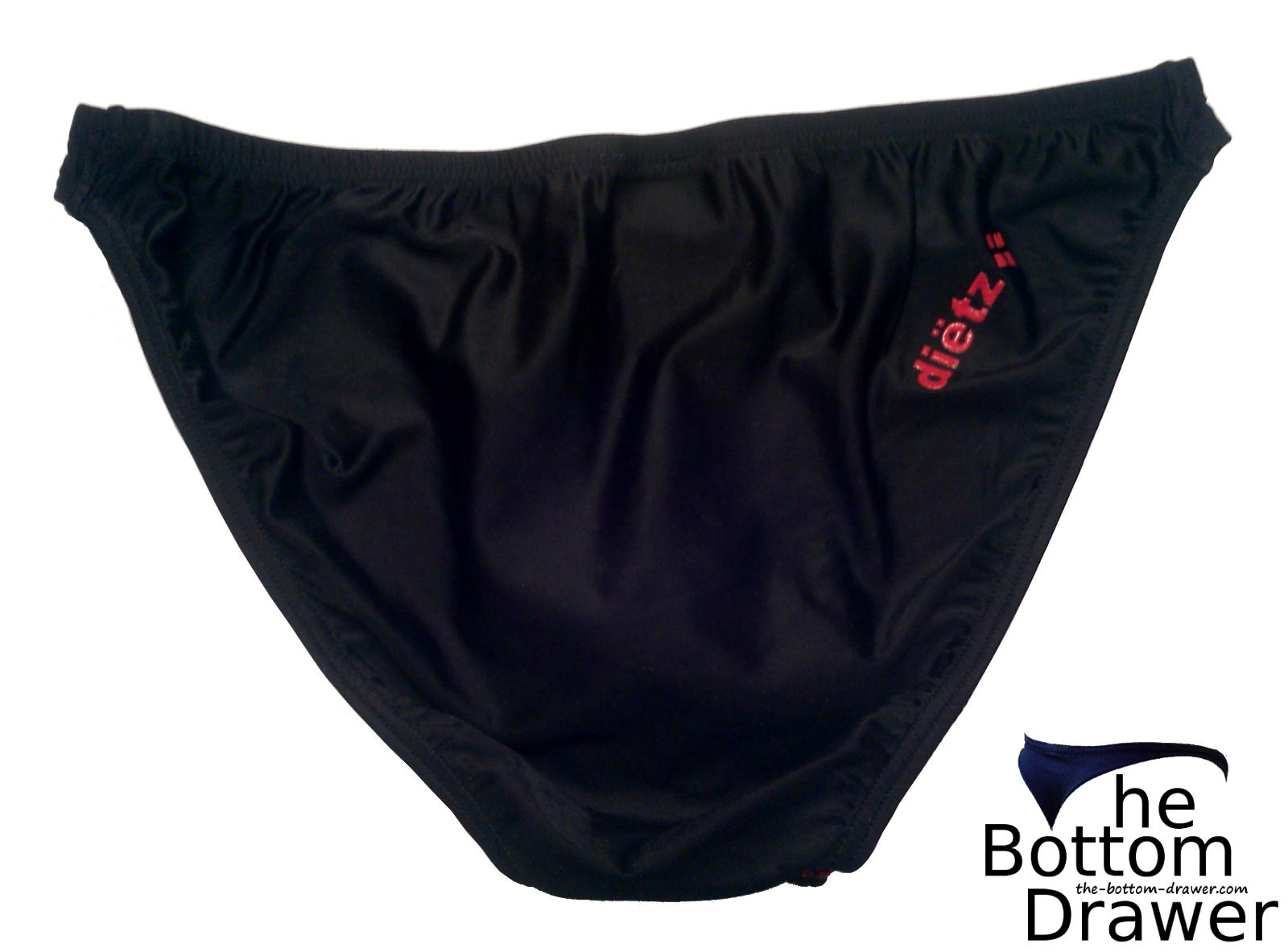 These are the bikini briefs that made the Dietz brand a new member of my brands to buy list. First off I find them to be a well made bikini. They’re a nice snug fit with the fabric being a 80% Polyester and 20% Elastane blend, so it has some stretch and cling to them. The bikini back is pretty much a full back and has a small Dietz logo on the right side in red. The v-shaped pouch is centered seamed with red stitching, which gives it some character. The center seam isn’t like most underwear where they sew the two pieces together on the inside. It’s more of a flat seam with the stitches visible on both sides. The pouch also has a small red Dietz logo located on the left side. This bikini brief offers great support. With the 1″ sides it shows off the legs nicely. They are to be hand washed and hung to dry and are made in Mexico.