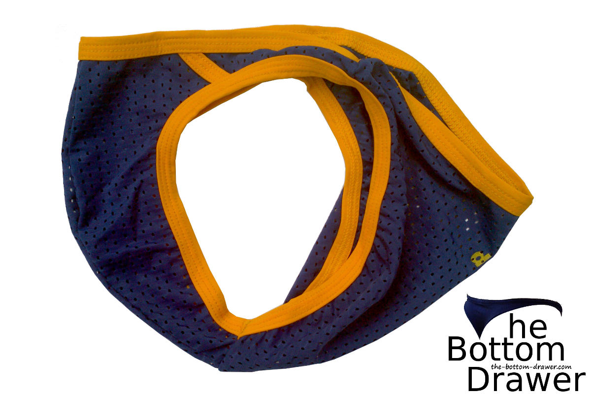 Neither of those things breaks this pair for me. I really do love how these fit. Also love the color accent piping. These are a low rise cut. The cut reminds me of the Olympic divers swim briefs, but with narrower sides. The back is what I’ll call 3/4ish, so shows some extra cheek. It does have a centered seam front pouch, so there is some contouring to it. The sides of these are around 1 1/2″. The fabric is a sport mesh. They have the holes like some athletic shorts have (maybe those are a throwback athletic short fabric?). So there will be some visibility of your package, but will help keep things cooler for the boys. They’re made out of a blend of 84% polyamide and 16% Elastane. It is recommended to hand wash and hang these to dry.