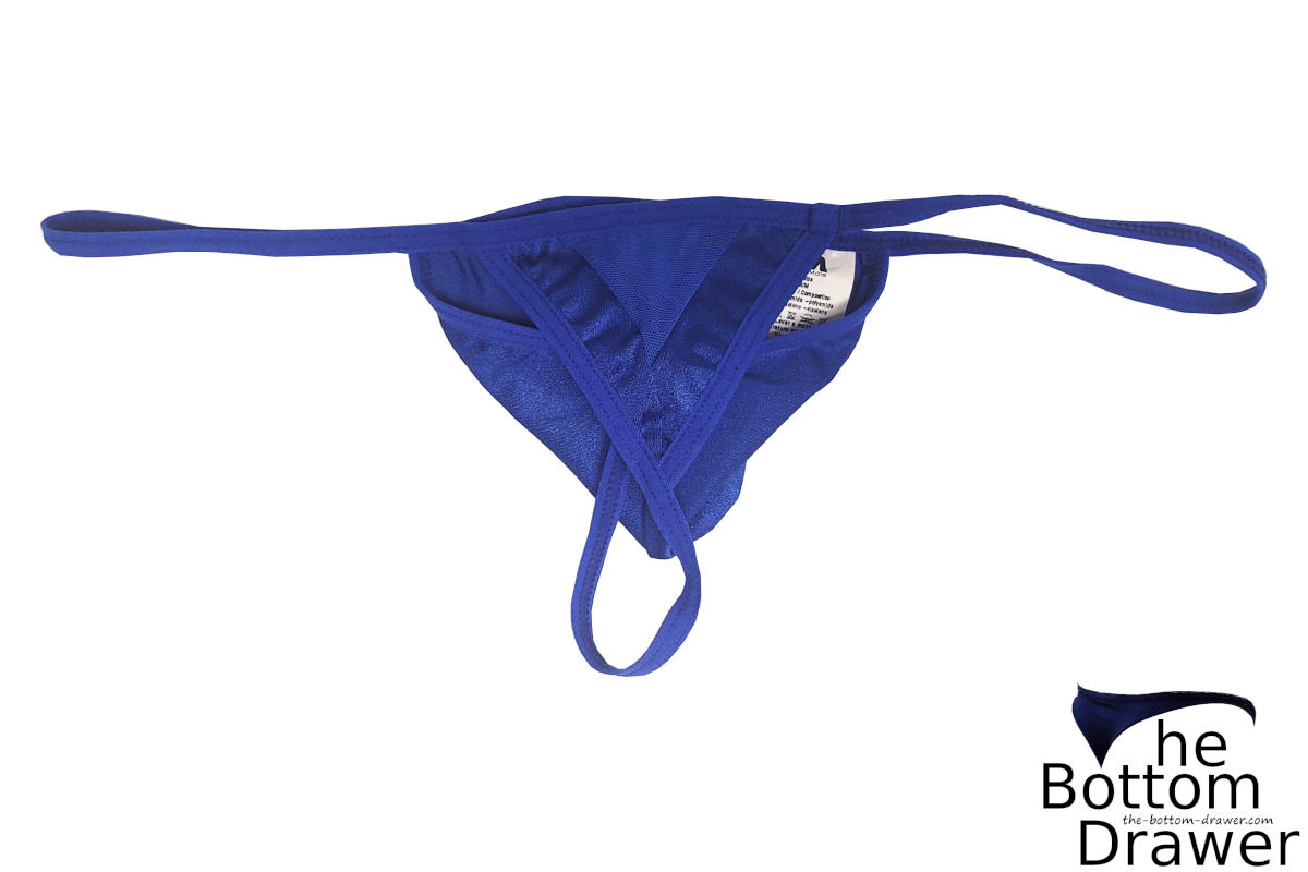 Well this g-string or v-string or whatever you want to call it is revealing. It is made of a blend of 87.47% polyamide and 12.53% elastane. The sides and tail both measure in at 1/4″. The pouch is a center seam, but is a deep and not much of a rise design. Kind of a smushed C. The pouch at the top has a half circle mesh panel with the flat side running along the was band. Then the tail had a triangle mesh panel incorporated into it. These are made in Columbia and are to be hand washed and hung to dry.
